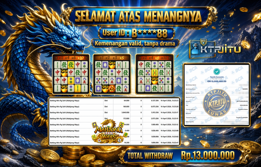 Note : Kemenangan telah dibayarkan lunas tanpa potongan apa pun. Dengan demikian, Hal ini membuktikan bahwa KTPJITU resmi dan bertanggung jawab dalam membayar seluruh kemenangan pemain.