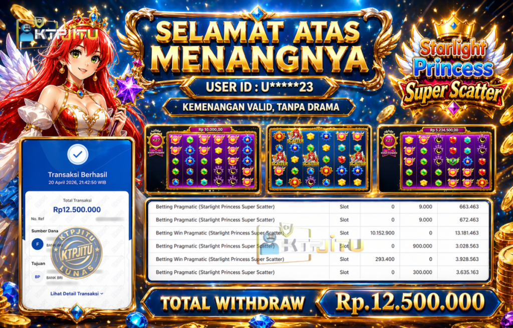 Note : Kemenangan telah dibayarkan lunas tanpa potongan apa pun. Dengan demikian, Hal ini membuktikan bahwa KTPJITU resmi dan bertanggung jawab dalam membayar seluruh kemenangan pemain.
