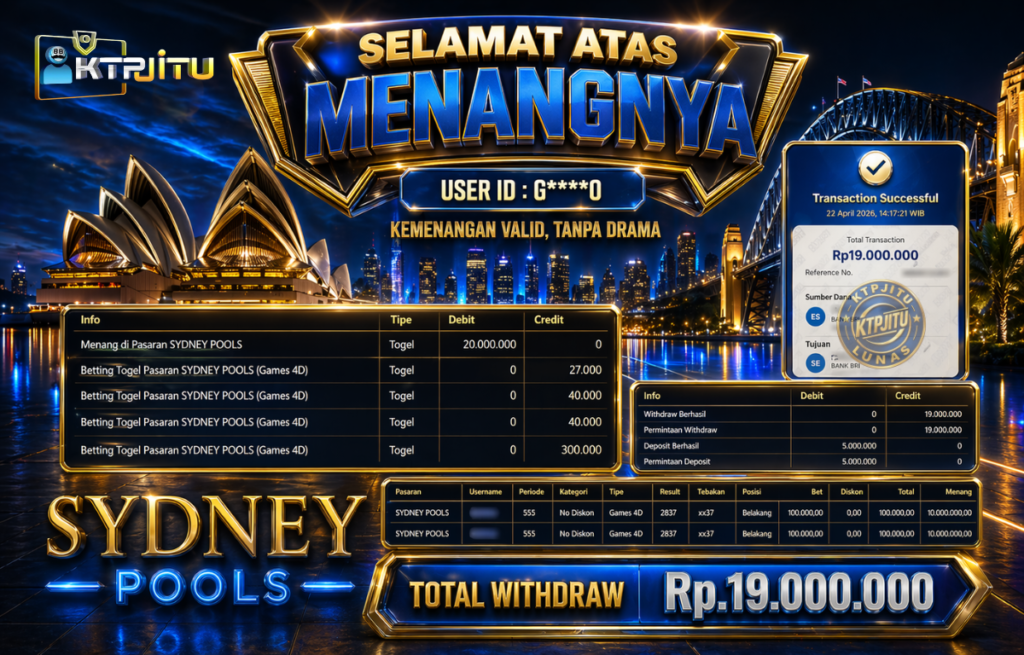 Note : Kemenangan telah dibayarkan lunas tanpa potongan apa pun. Dengan demikian, Hal ini membuktikan bahwa KTPJITU resmi dan bertanggung jawab dalam membayar seluruh kemenangan pemain.